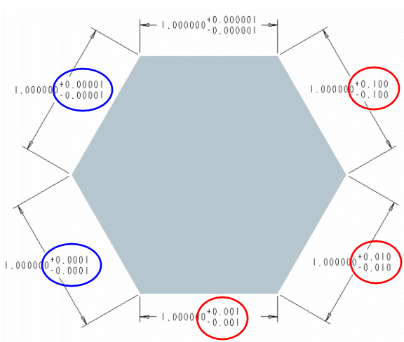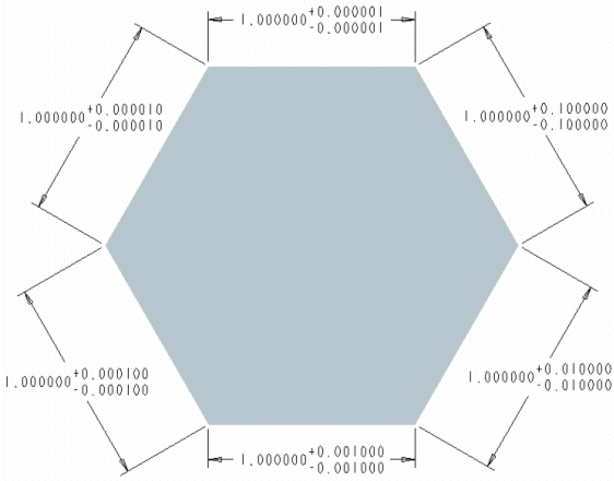 In the previous figure, tolerances with significant digits beyond 3 decimal places are displayed to the last significant digit. Subsequent trailing zeros