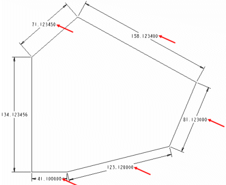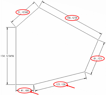 for all dimensions with values less than 3 decimal places. Such dimensions are identified by an arrow as shown in the following figure:
